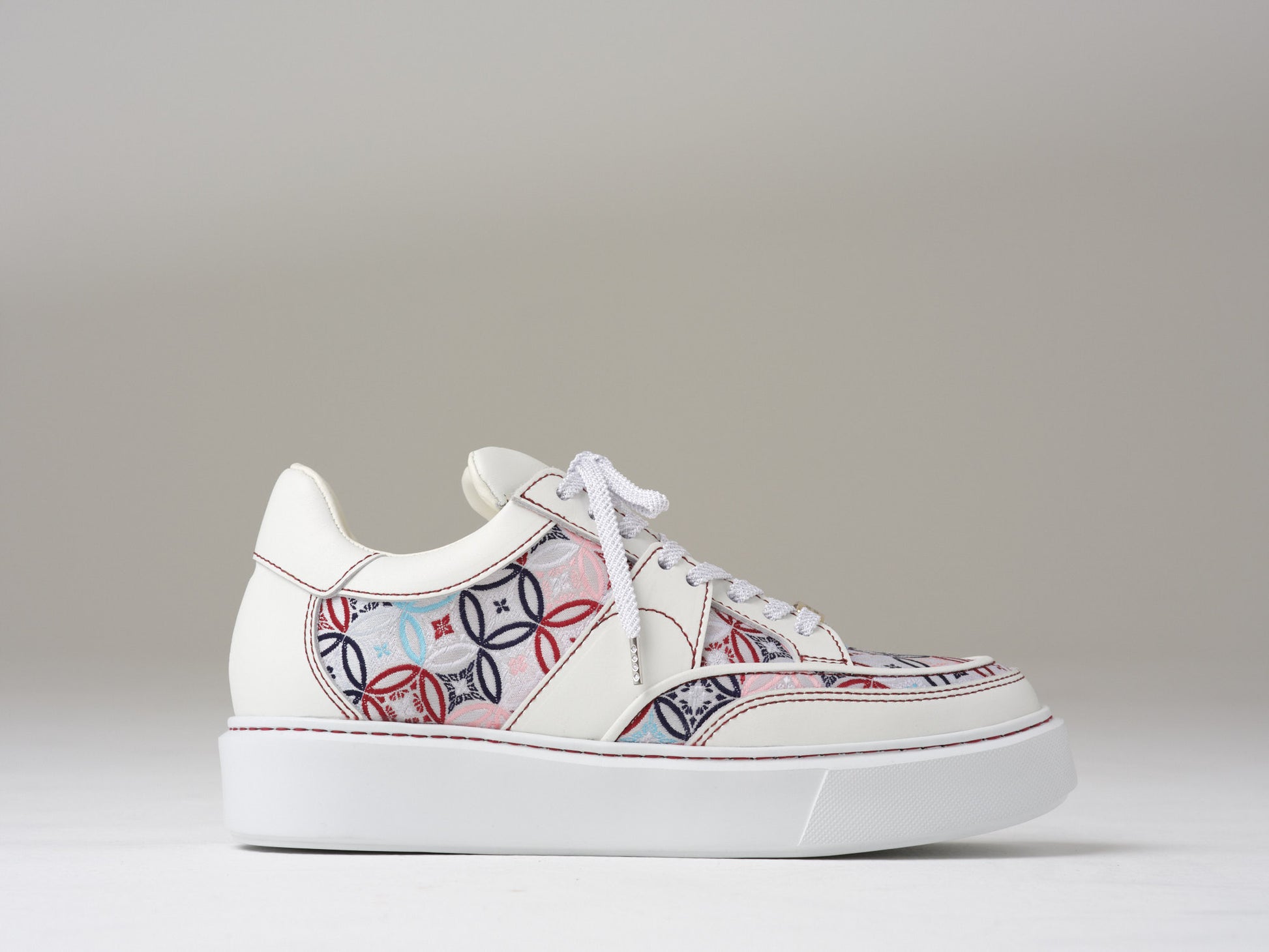 "The interconnected circle design symbolizes bonds between people and continuity. With its geometric pattern and vibrant colors, it has a light and playful feel, making it a great choice for casual outfits."